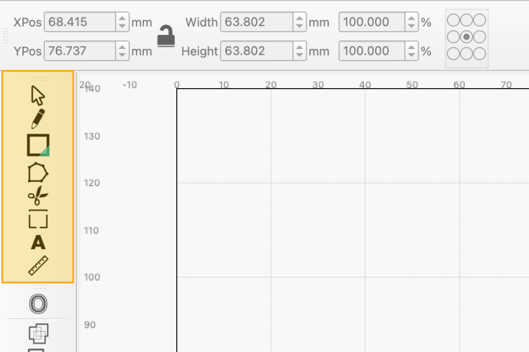 The Creation Toolbar contains all of LightBurn's most essential design tools, including tools to Draw Lines, create Primary Shapes, Create and Edit Text, Edit Nodes, and more.