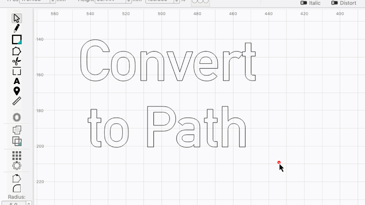 Convert to Path transforms built-in shapes created in LightBurn into paths made up of lines, curves, and nodes, that can be edited using the Edit Nodes tool.