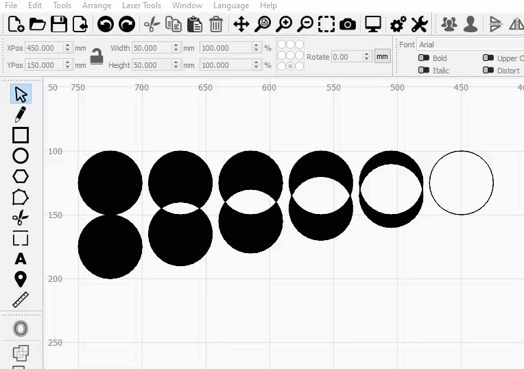 Use the Boolean tools to combine existing shapes (or Grouped shapes) into new or more complex shapes. There are three Boolean options, along with one very similar option, Weld.