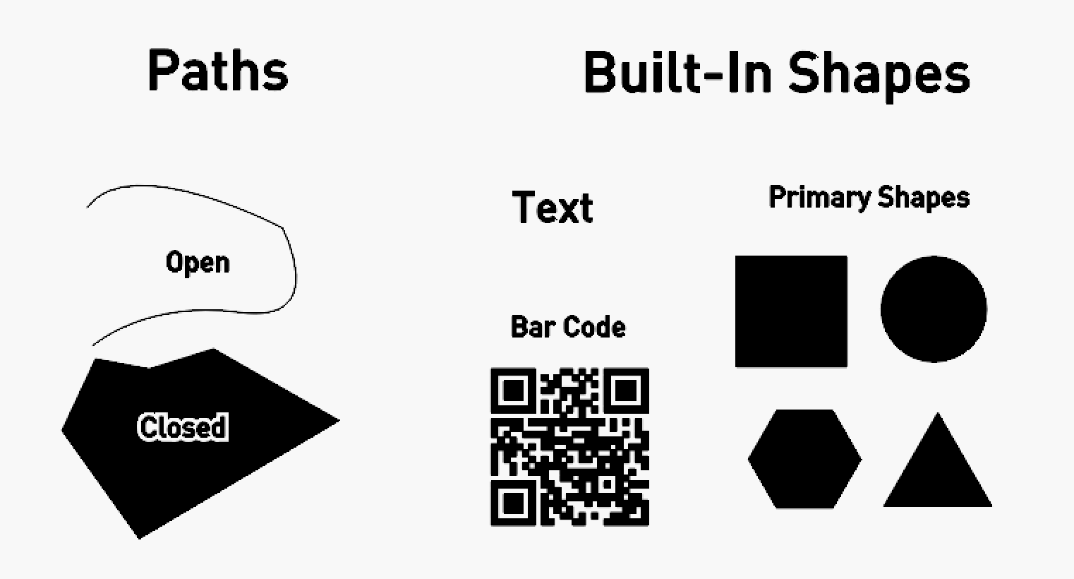 LightBurn also offers more intelligent vectors in the form of built-in shapes. These have properties that remain editable so long as the object isn't converted to a path. Built-in shapes include Text, Bar Codes and Primary Shapes such as Ellipses, Rectangles, and Polygons.