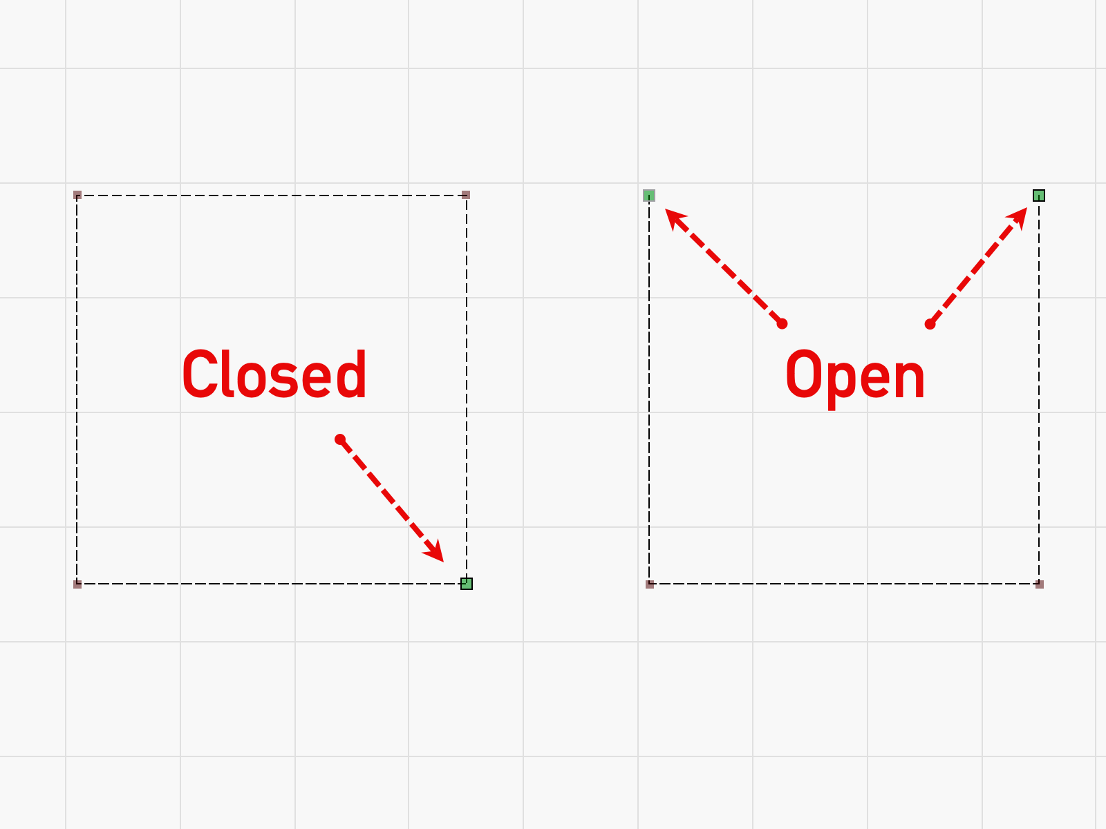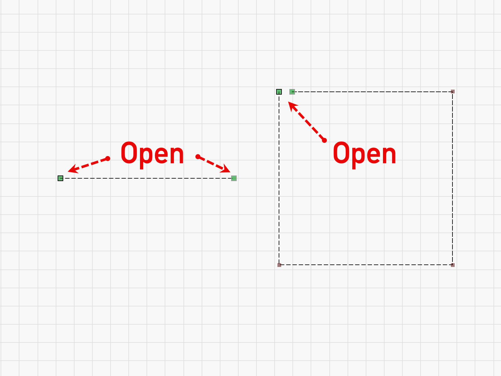In some cases, as with simple line segments or shapes with large gaps, it's easy to see that a shape is open, but in others it may not be as obvious.