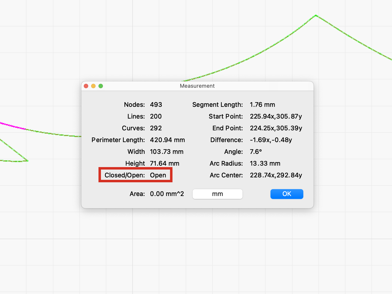 LightBurn provides several methods for identifying whether a shape is open or closed.