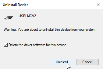 - After installing the driver, the laser will appear under Universal Serial Bus devices as USBLMCV2, USBLMCV4, or something else similar.
