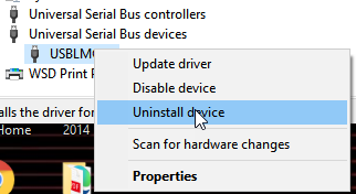 Right-click the device and choose Uninstall Device from the pop-up menu.