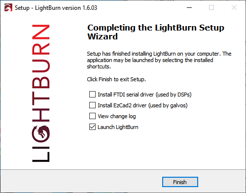 If you have an EZCAD-based laser, this can be achieved by checking the Install EZCAD2 Driver box in the LightBurn installer.