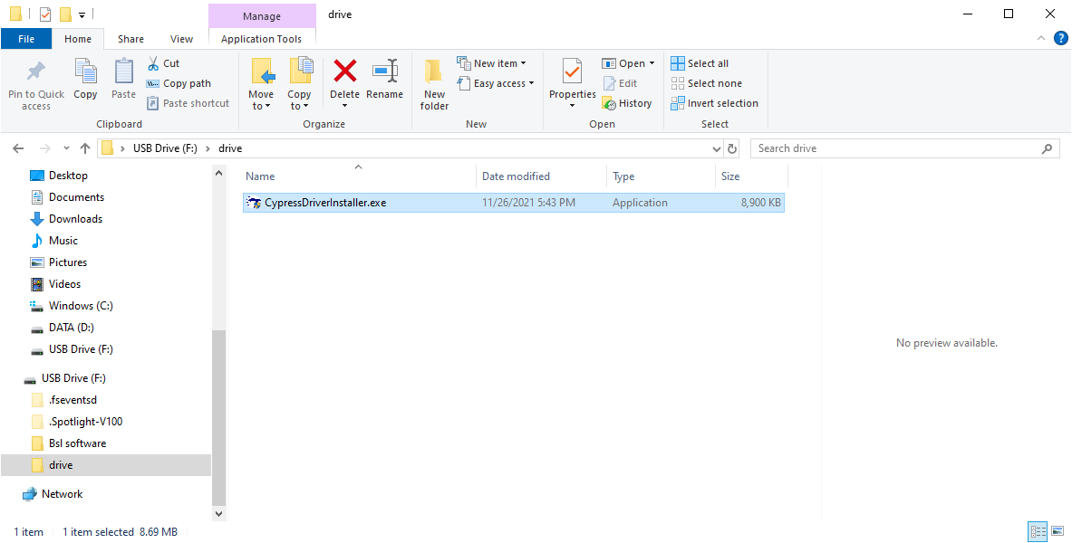 Search the USB drive that came with your laser for the executable file that installs the Cypress driver. Double-click the file to begin the installation process.