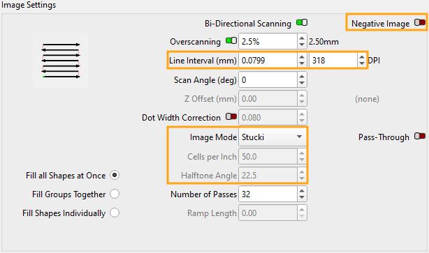 Turn on the Invert Display option to show the processed image with black for the background and white for lasered lines.