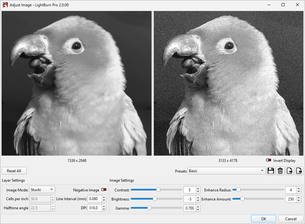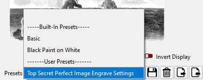 LightBurn provides two Built-In Presets, as well as the option to save your own frequently used image settings as User Presets.