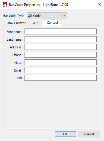 The WIFI tab in the Bar Code Properties window The Contact tab in the Bar Code Properties window