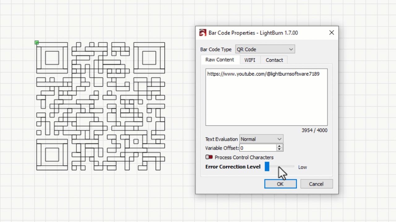 For supported Bar Code Types, tells LightBurn to output the text from the Raw Content field along with the Bar Code. This switch is enabled by default.