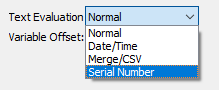 Variable Offset adds to the Current value in the Variable Text Window by the entered amount, allowing you to have multiple Bar Codes in your Workspace using the same Variable Text formatting, but displaying different Serial Numbers, or referring to different rows of a CSV.
