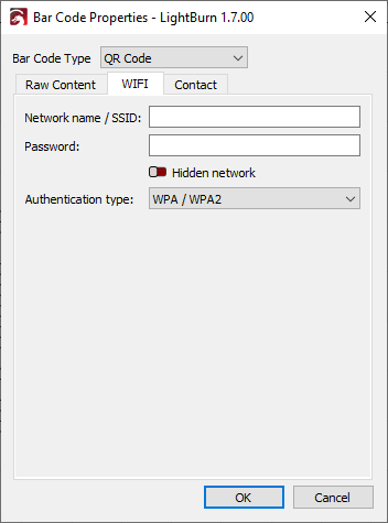 For QR Codes, you can choose to enter data as Raw Content, WIFI credentials, or Contact information.