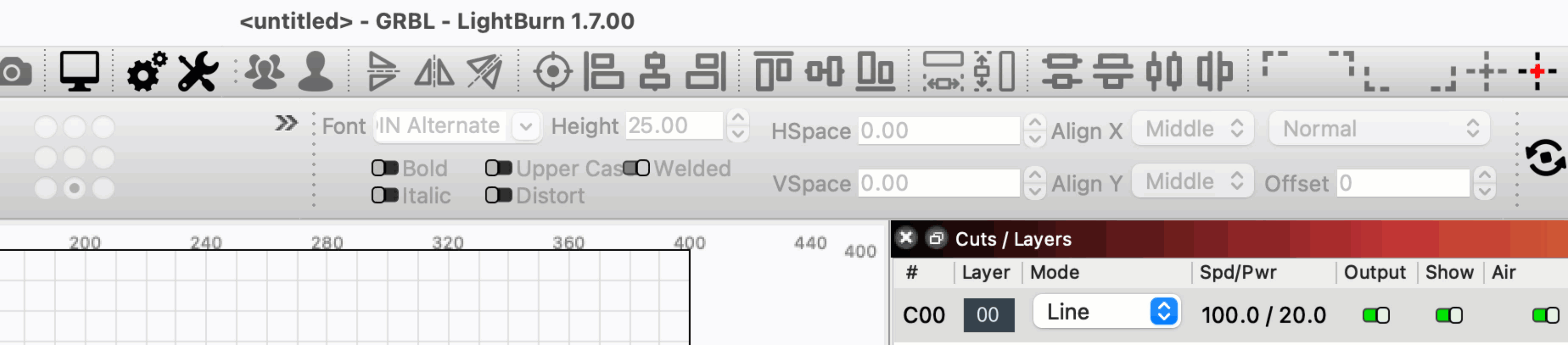 If you're searching for a button or features and you don't see it, it might be because of Beginner Mode, but it could also be because you're using a machine that doesn't support the feature you're looking for. LightBurn's interface adapts to only show you the features that are compatible with your machine type.