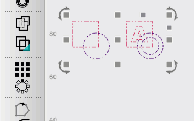 Grouping multiple shapes together tells MillMage to treat them as a single shape. For example, Group an outer circle with an inner circle to treat it as a donut shape rather than two separate circles. Grouping shapes in this way can sometimes yield different results than you'll see with the same objects when they're not Grouped.