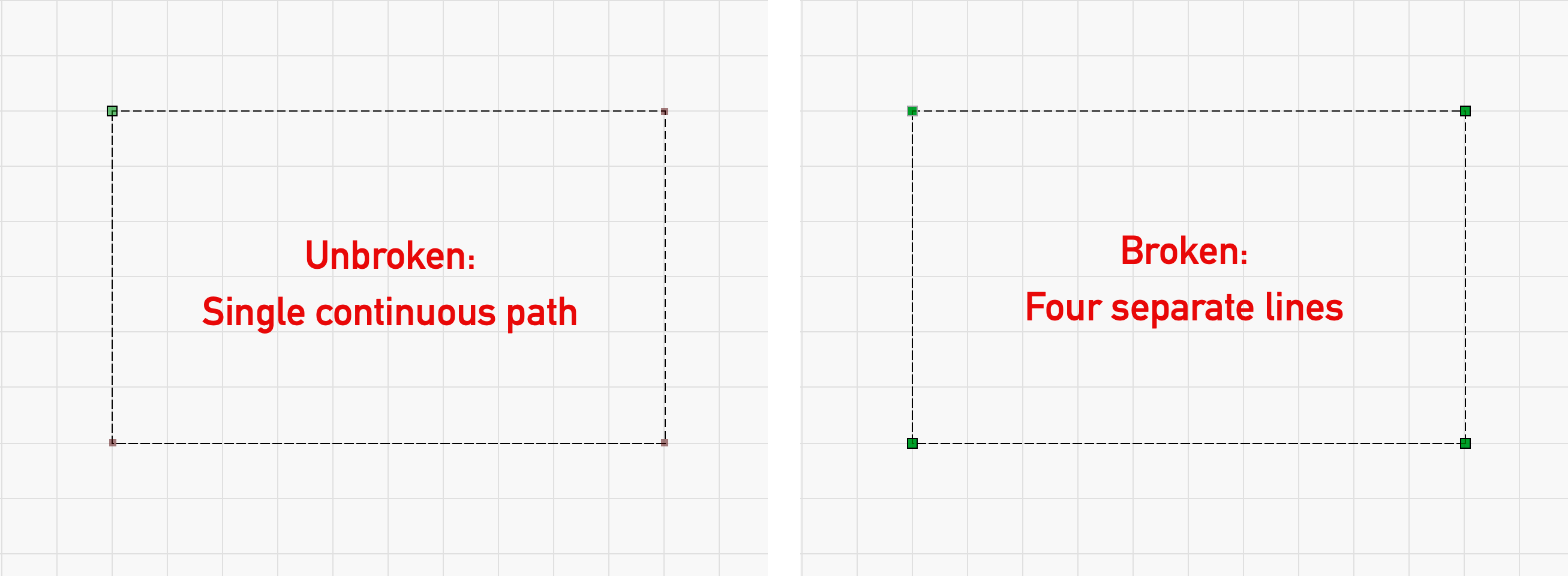 For example, a rectangular vector graphic is a path made of four straight lines connected by four nodes, with one node that is both the start and end of the path. Breaking Apart a rectangle results in four disconnected lines, each with their own start and end node.