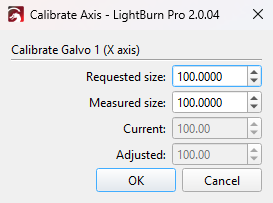 Calibrate your X and Y axis scaling after running the Nine Point Correction wizard to fine tune your Galvo laser's output to match the requested artwork dimensions.