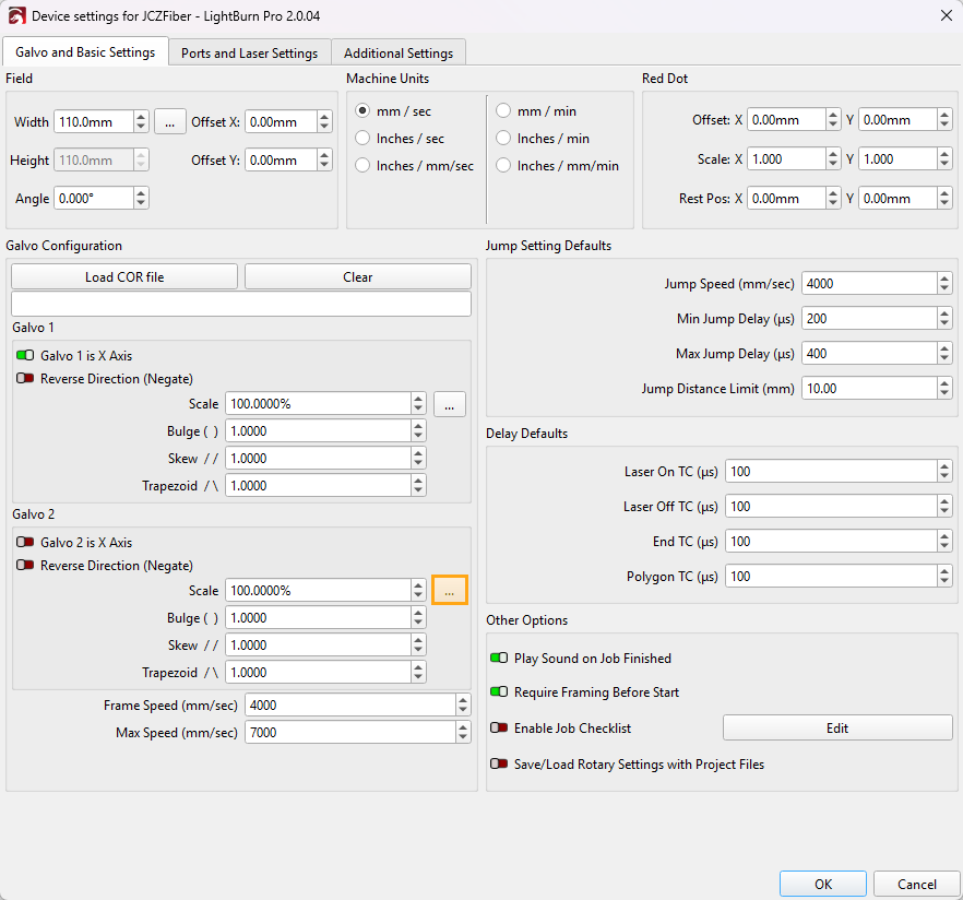 Repeat the process for the other axis in the Galvo 2 section.