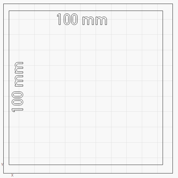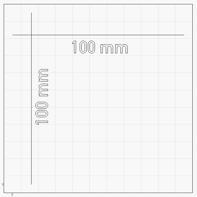 Select the Draw Line tool and in the LightBurn Workspace draw a 100 mm line along the X axis and another along the Y-axis, or the Draw Primary Shapes tool and draw a box with equal dimensions — for example 100 mm.