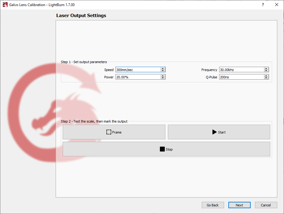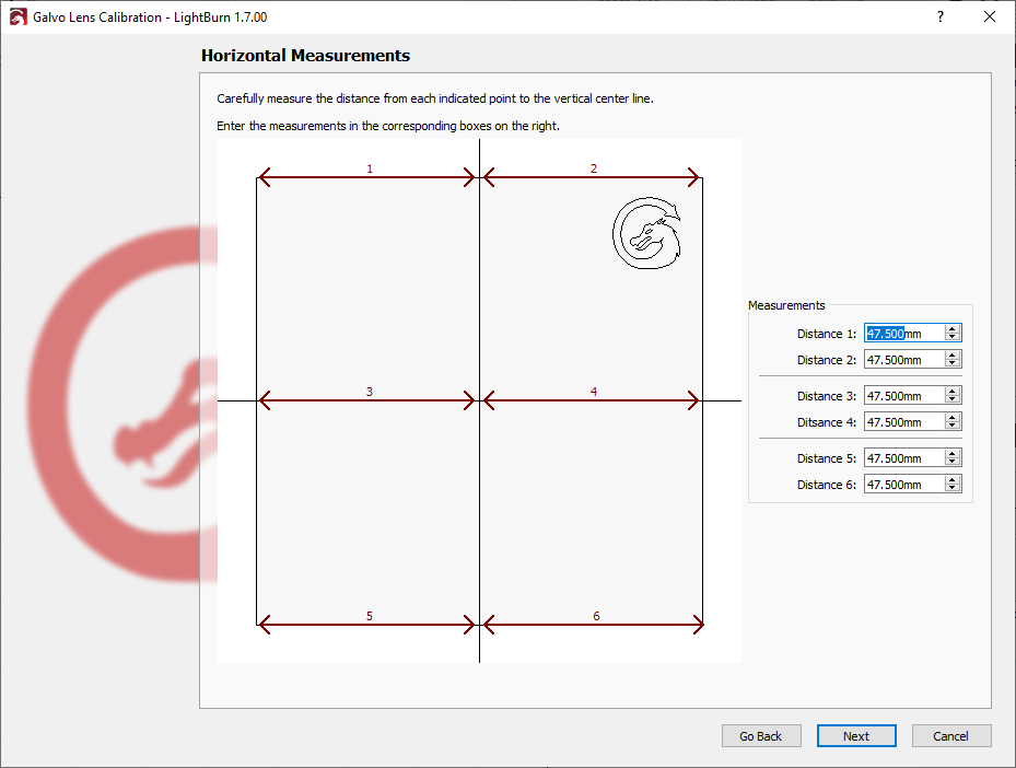 If your manufacturer didn't provide the necessary file, or you purchase a new lens for a laser you already own, however, you may need to use LightBurn's Galvo Lens Calibration wizard to find the appropriate corrections.