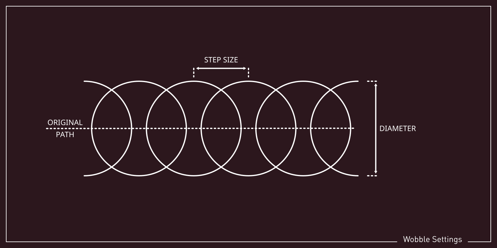 Enable Wobble to tell the laser to trace small circles along the path of the line, creating a thicker line and forcing the beam to spend longer in each section of the line. The Step value refers to how far apart the circles are, and the Size value refers to the diameter of the circles (in millimeters).