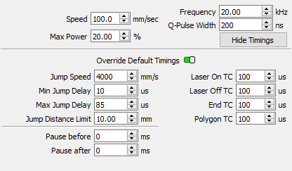 Enable Override Default Timings to set custom timings on a per-layer basis. If you leave it disabled, your laser will instead use the timings established in your Device Settings.