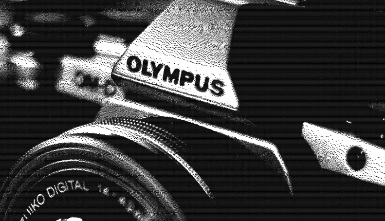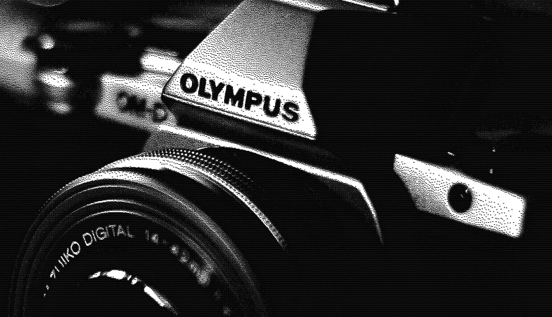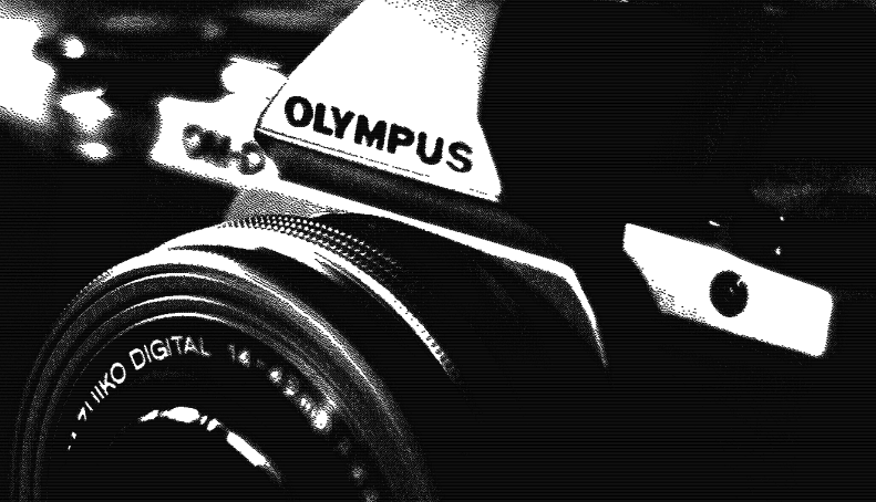 Also called ordered dithering, this is a step above threshold for grayscale images, and uses densely packed on/off dots to approximate shading, using an ordered/regular grid pattern. This is ok for general use, but works best for images with large areas of solid fill, where diffusion dithering can cause unwanted artifacts (see below).