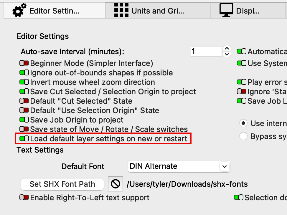 LightBurn's Universal Defaults¶