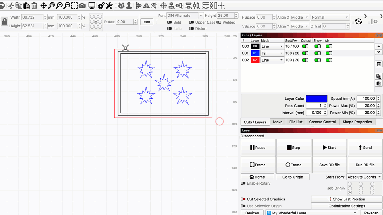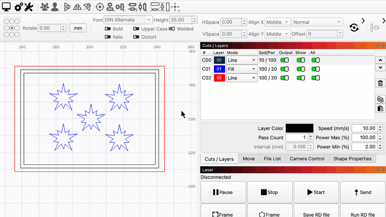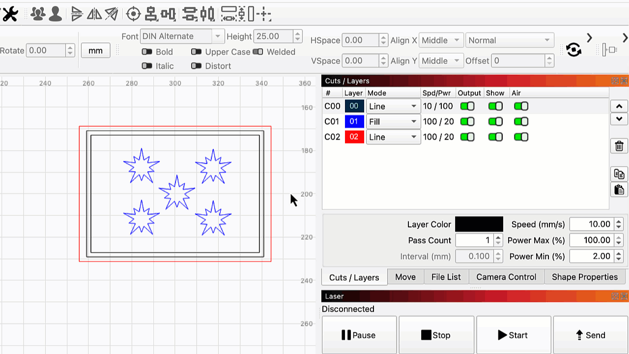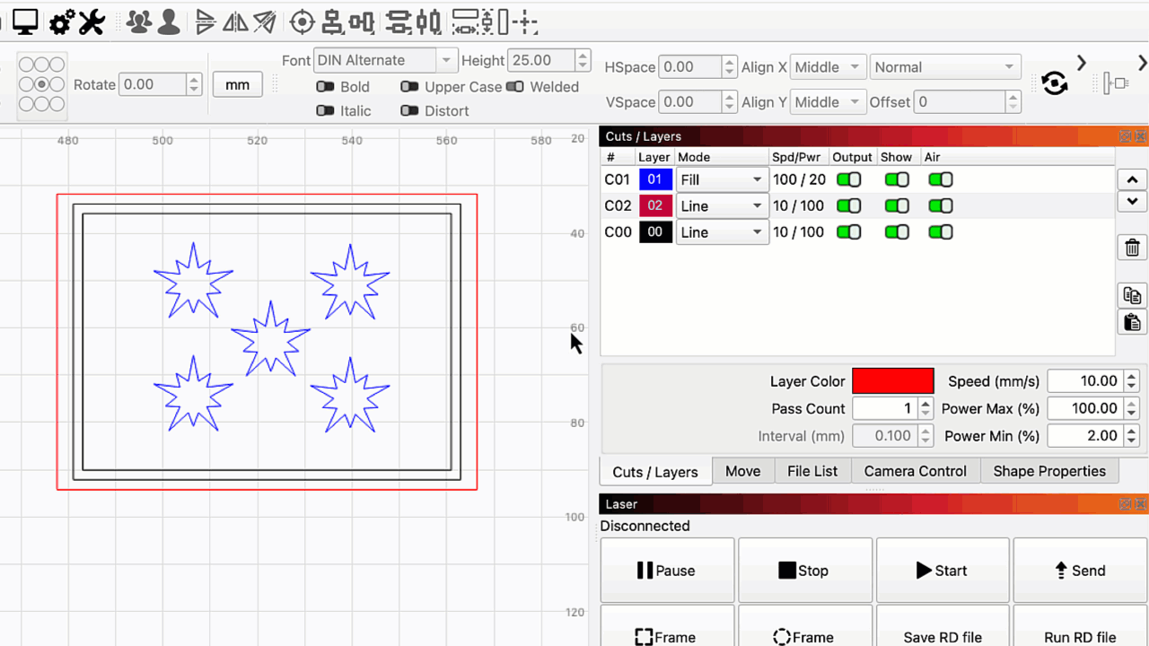 By default, layer operations are performed by your laser in the order from top to bottom in which they are listed in the Cuts / Layers Window.