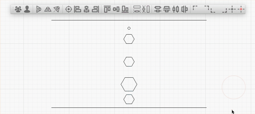 creates even spacing between the centers of all selected objects in the vertical dimension.