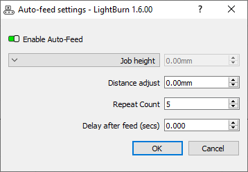 Job Height: the feeder will advance the same distance as the height of the job you send to the laser.