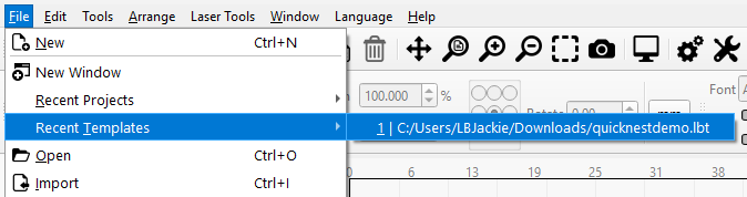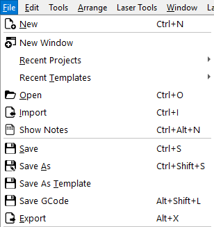 It is also possible to Import .lbrn or .lbrn2 files — however, Importing these types of files does not load the cut settings or any other project-specific information saved to the file. Only the graphics will be loaded.