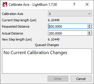 The Calibrate Axis tool is a shortcut to help you calculate the Steps/mm or Step Length value for each axis, if they need adjustment — if the current values are inaccurate, output may be stretched or squished.