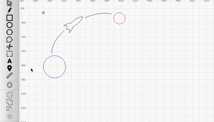Click, hold, and drag between any two points in your Workspace to display information on a temporary line created between those points. You can snap to a shape or node on a shape, or click anywhere in your Workspace, even if no shape is present.