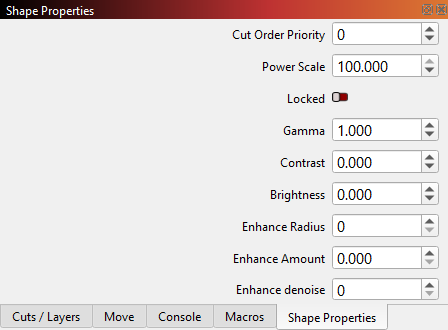 The Shape Properties Window will appear docked behind the Cuts / Layers Window on the upper right side of your screen. Click the Shape Properties tab to bring the Shape Properties Window to the front.