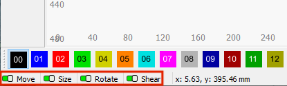 Use the Transform Control Toggles in the bottom left of the LightBurn window to enable and disable specific types of editing across an entire project, and prevent accidental edits, such as inadvertently scaling a design that contains strict sizing, or moving tightly nested parts.
