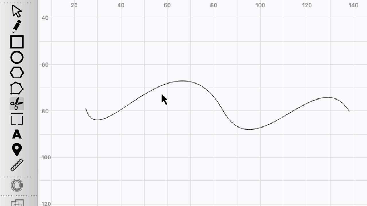 When you hover over a valid line segment, the cursor will change to the scissor icon, and the segment to be deleted will turn red.
