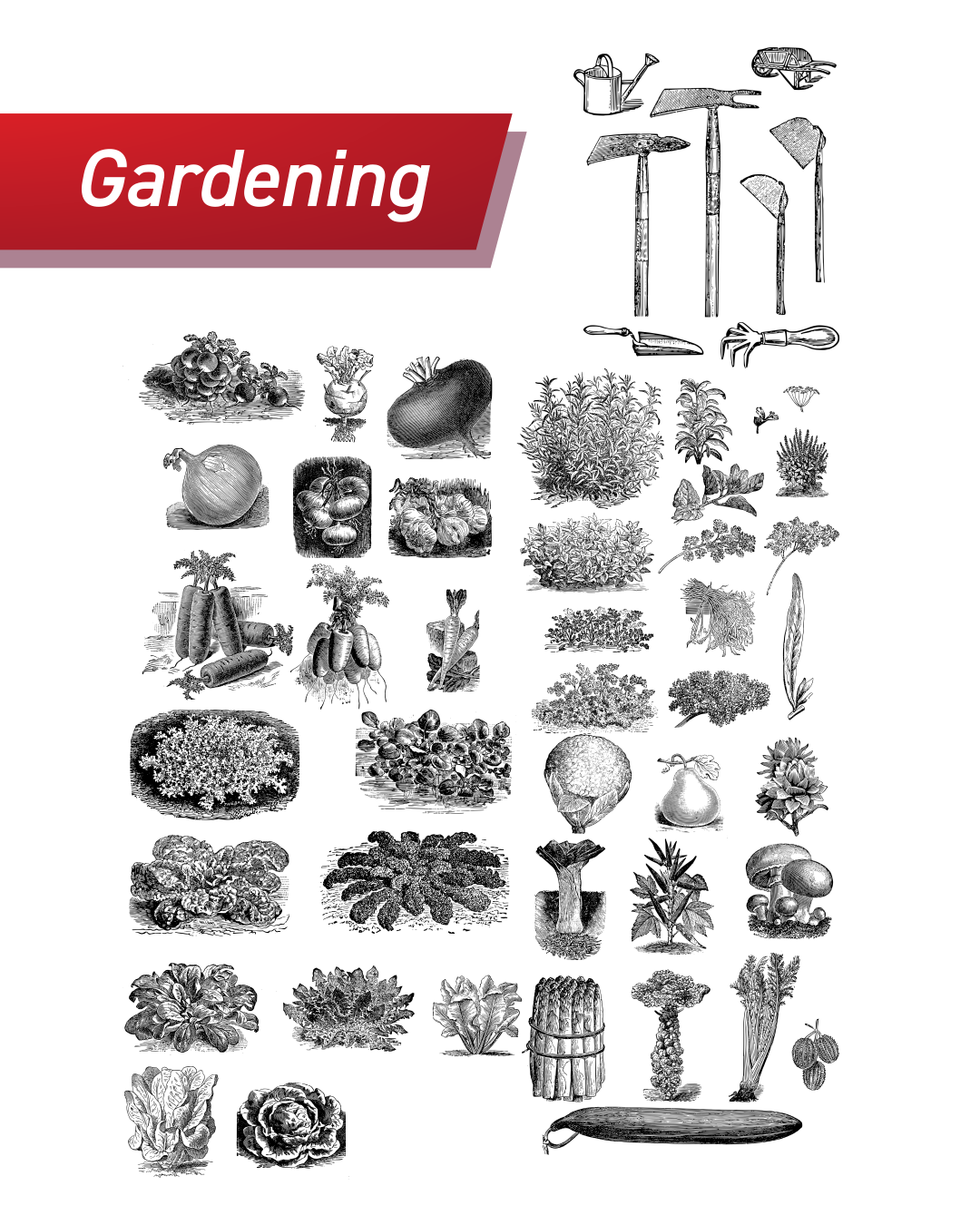 - Garden, featuring plants and gardening tools.