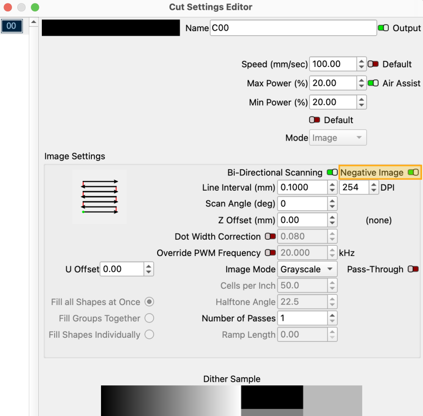 The Negative Image option is useful when you're engraving on slate or another material whose original surface is darker than the mark your laser will make on it.
