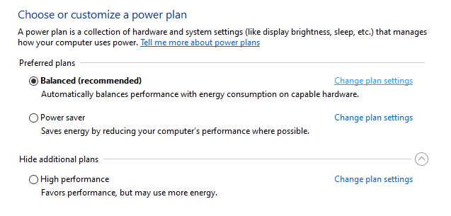 - Under "Preferred Plan", click on Change plan settings for the active power plan